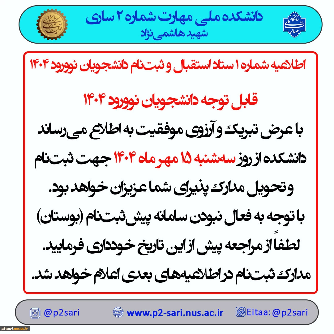 اطلاعیه شماره 1 ستاد ثبتنام 2