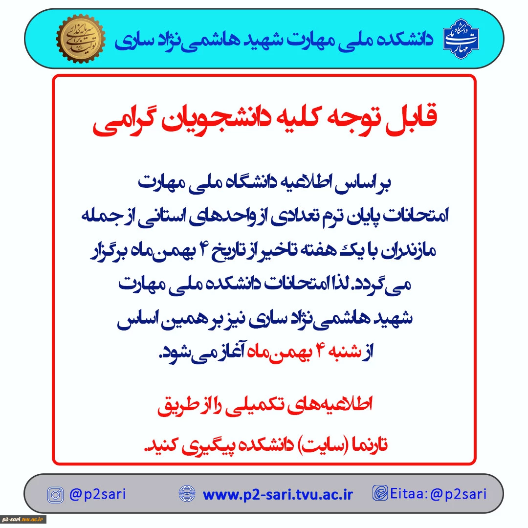 اطلاعیه تاخیر امتحانات 2